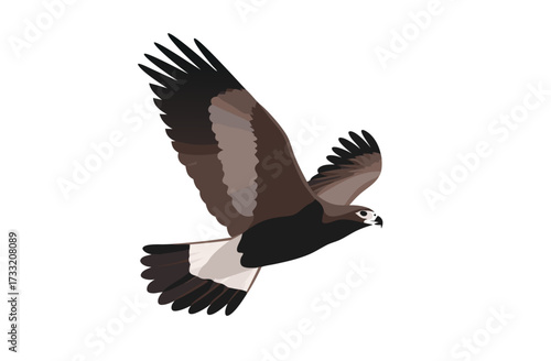 Fototapeta premium Majestic flying bird of prey, an eagle or hawk, soaring with wings spread. Isolated vector illustration on white background.