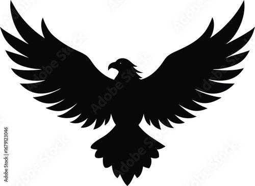 © Mofajjol, Fototapeta premium Majestic flying eagle silhouette with spread wings in dynamic pose
