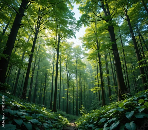 Naklejka premium Majestic Forest Landscape - High Resolution Background
