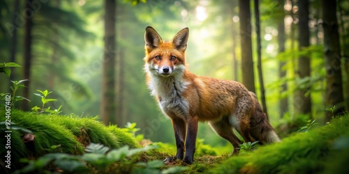 Obraz premium Majestic fox in a lush, green forest, wildlife, nature, animal, fox, beauty,...