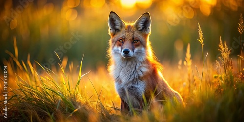 © Adisorn, Fototapeta premium Majestic Fox in Tall Grass - Wildlife Stock Photo