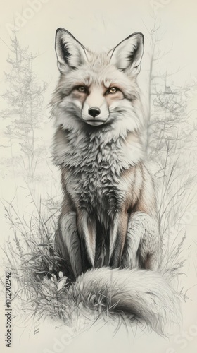 Obraz premium Majestic Fox Sitting Serene In Winter Woods
