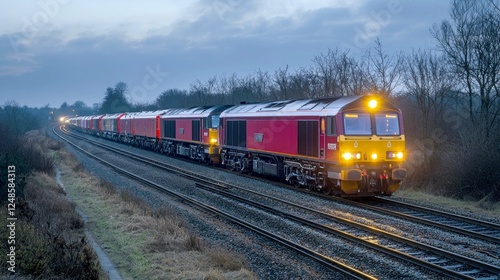 Fototapeta premium Majestic Freight Train Rolling Through the Night: A Captivating Display of Power and Precision on the Rails