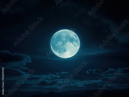 Fototapeta premium Majestic full moon illuminating dark sky with wispy clouds and twinkling...