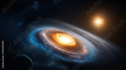© Edhar, Obraz premium Majestic galaxy with swirling stars and bright celestial bodies