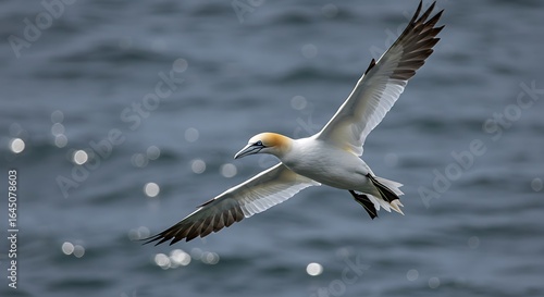 © Mei Studio, Obraz premium Majestic Gannet Soaring Above the Sparkling Ocean with Wings Extended