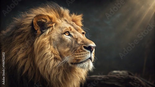 Fototapeta premium Majestic Gaze: The Lion King in Photorealistic Glory