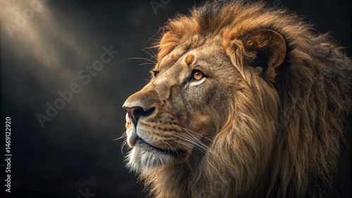 Fototapeta premium Majestic Gaze: The Lion King in Photorealistic Glory