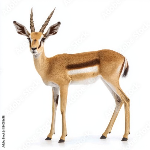 © Black_Studio, Fototapeta premium Majestic Gazelle: A Stunning Portrait of African Wildlife. Discover the beauty and grace of this elegant antelope against a pristine white background.