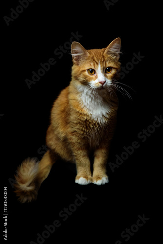 © Erik Morgan, Obraz premium Majestic Ginger Cat Looking at Camera Posing Against a Black Studio Background.