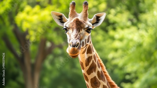 Fototapeta premium Majestic Giraffe Standing Amidst Lush Greenery in Natural Habitat