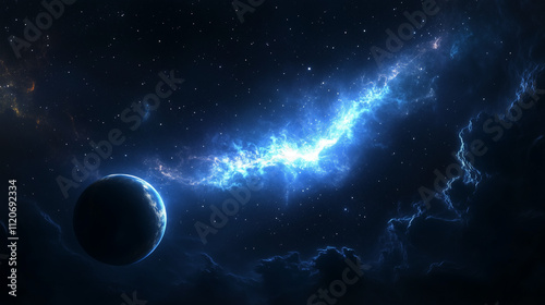 © Naseem, Obraz premium Majestic Glowing Nebula and Starry Night Perfect for Sci-Fi, Fantasy, and Space Exploration Projects