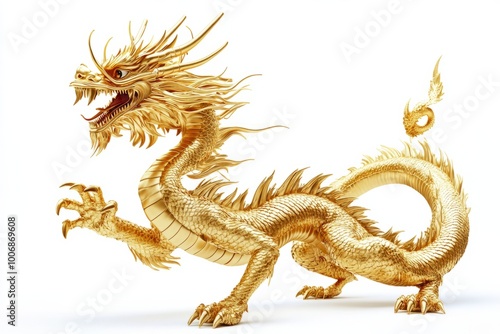 © robertuzhbt89, Obraz premium Majestic Golden Dragon Illustration