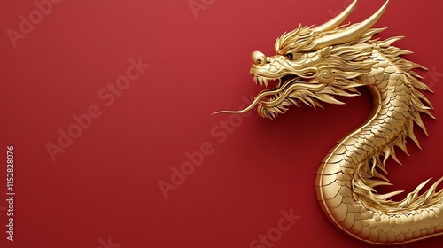 Obraz premium Majestic Golden Dragon Soaring Over Textured Crimson Backdrop with Reserved...