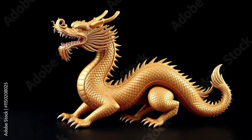 Obraz premium Majestic Golden Dragon Statue: A Symbol of Power and Prosperity in Asian Culture