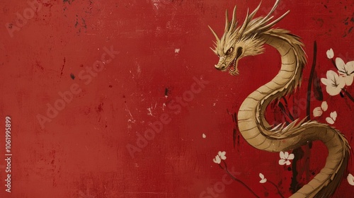 © Official, Obraz premium Majestic Golden Dragon with Floral Details