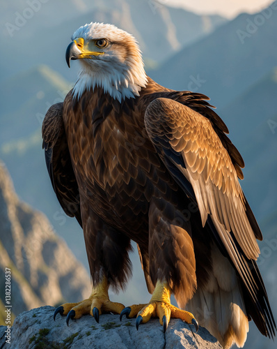 © AcikLens, Obraz premium Majestic Golden Eagle Perched Over Mountain Landscape, Power and Resilience