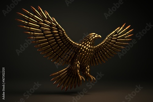 Obraz premium Majestic golden eagle symbol crafted from polished brass rifle bullets