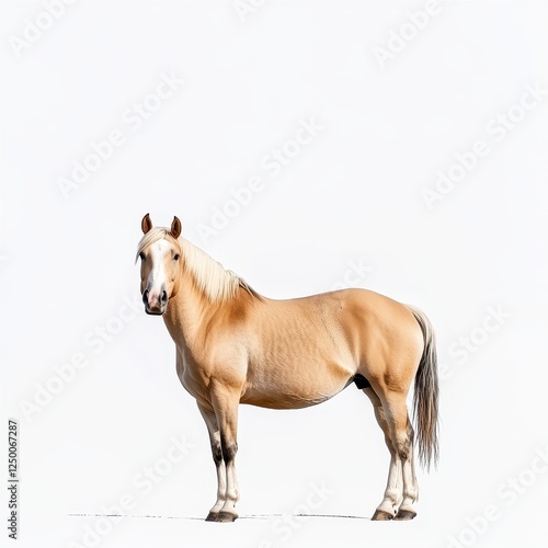 © aun, Obraz premium Majestic Golden Horse Stands Gracefully Against White Background