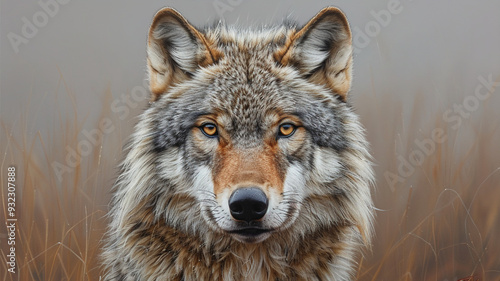 Obraz premium majestic gray wolf portrait in wildlife on blurred background