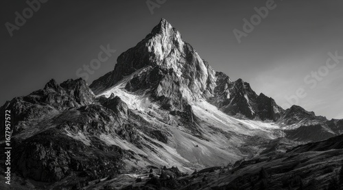 Obraz premium Majestic grayscale mountain peak