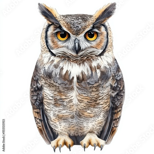 © Nuttapong, Fototapeta premium Majestic Great Horned Owl Watercolor Painting