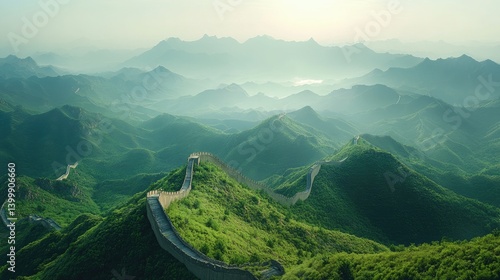 Fototapeta premium Majestic Great Wall Winds Through Lush Green Hills, A Testament To History...