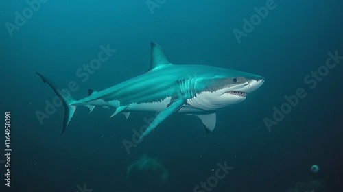 Obraz premium Majestic great white shark gracefully gliding through the deep ocean's...