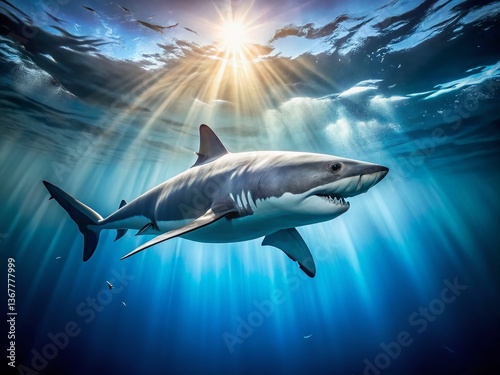 © Sirinporn, Fototapeta premium Majestic Great White Shark Ocean Predator Wildlife Marine Animal Underwater Photo