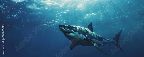 Fototapeta premium Majestic great white shark patrolling the depths, 4K hyperrealistic photo