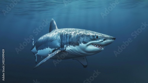 Fototapeta premium majestic great white shark powerful underwater predator deep blue ocean realistic 3d rendering