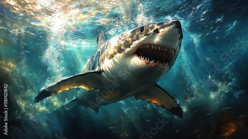 © Factory Stock, Fototapeta premium Majestic Great White Shark Underwater