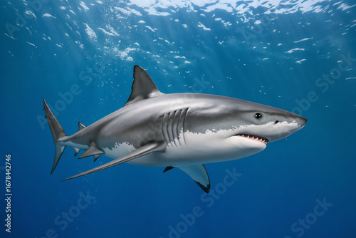 Fototapeta premium Majestic Great White Shark Underwater: Powerful Predator in Ocean Habitat