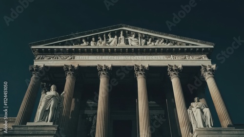 © Media Srock, Obraz premium Majestic Greek-Style Building with Columns and Statues at Night