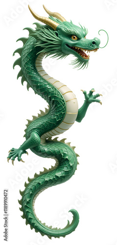 Obraz premium Majestic Green Dragon: A 3D Render of Mythical Creature