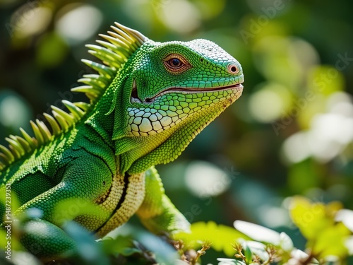© renuga sachan, Obraz premium Majestic Green Iguana, Exotic Reptile Portrait