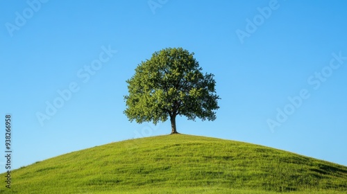 Obraz premium Majestic green tree atop a hill, beneath a clear blue sky, symbolizing...