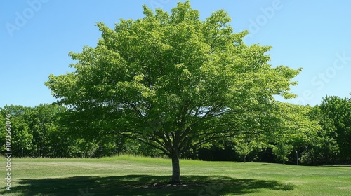 © akiladiba, Fototapeta premium Majestic Green Tree in Summer Meadow