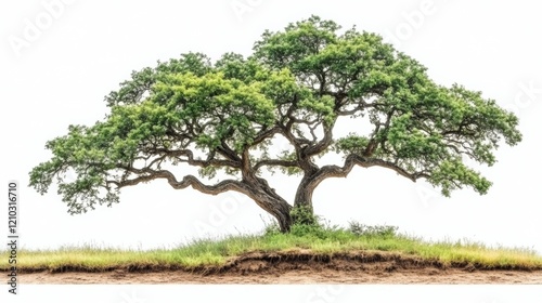 © Sam-th, Obraz premium Majestic Green Tree with Spreading Branches Against White Background