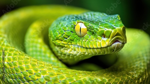 Naklejka premium Majestic Green Viper: A Stunning Representation of a Lush Jungle Serpent in...
