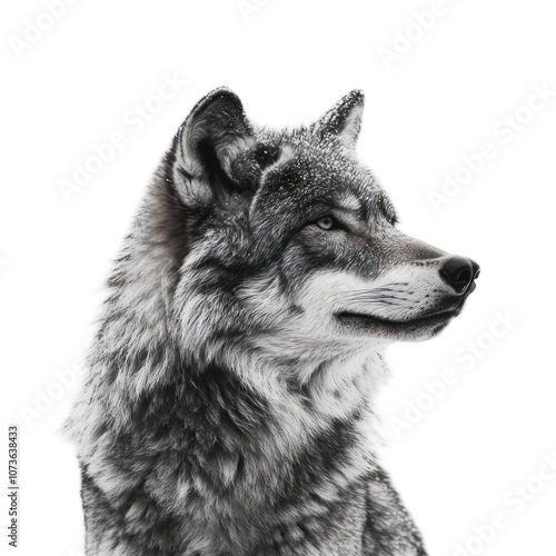 © Yadi, Fototapeta premium Majestic Grey Wolf Portrait Against White Background