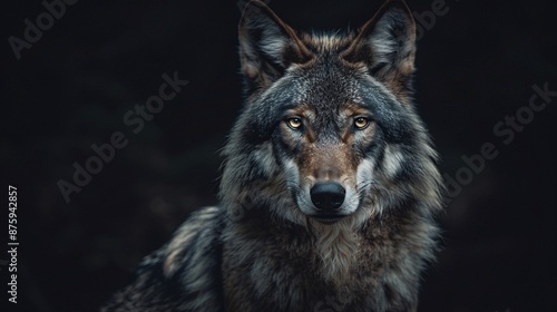 © Studicon, Fototapeta premium Majestic grey wolf staring directly into the camera.