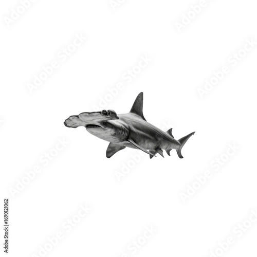 © Rivi, Fototapeta premium Majestic Hammerhead Shark in Monochrome A Powerful Underwater Image