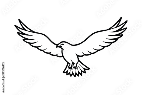 © Uttam, Fototapeta premium Majestic Hawk Soaring, Wings Outstretched, Black and White Illustration