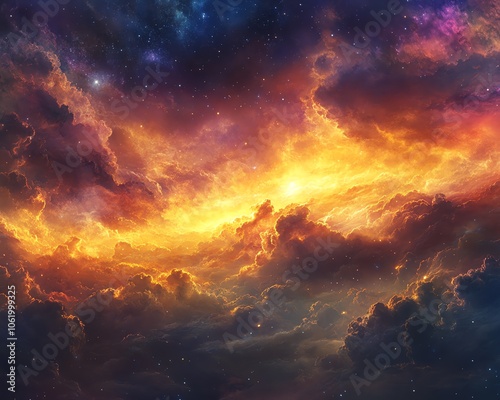© Nattapat, Naklejka premium Majestic heavenly sky showcasing brilliant colors and ethereal light, illustrating the concept of truth, purity, and spiritual blessings