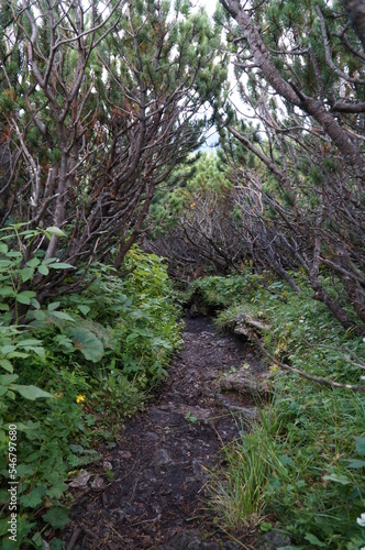 Fototapeta premium Majestic hiking trail under mountain pines.