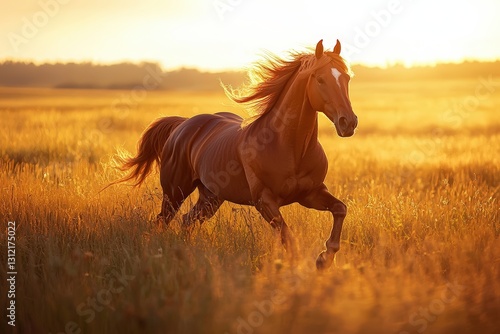 Fototapeta premium Majestic Horse Galloping Through Golden Field at Sunset