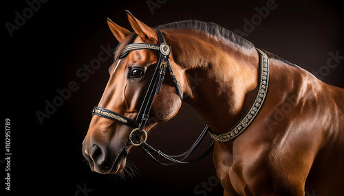 © Portraits, Obraz premium Majestic Horse in Ornate Bridle: A Photographic Portrait