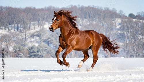 Obraz premium Majestic horse running joyfully in a snowy landscape