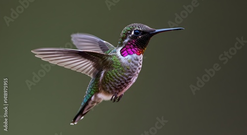 © MumarProject, Naklejka premium Majestic hummingbird displaying iridescent gorget feathers during mid flight